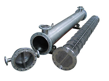 Intercambiador de calor de tubo y carcasa de dos pasos.