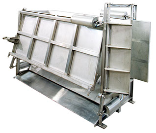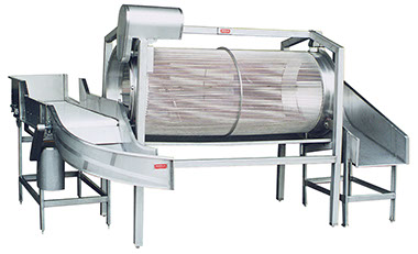 Tambor rotativo con estructura y sistema motriz, con banda de carga y tobogán de salida con accionamiento eléctrico