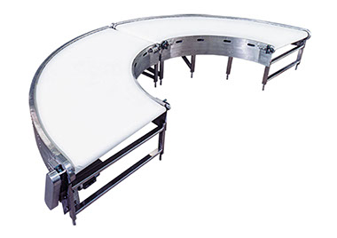 Transportadoras curvas de banda, dispuestas para giros de 180º.