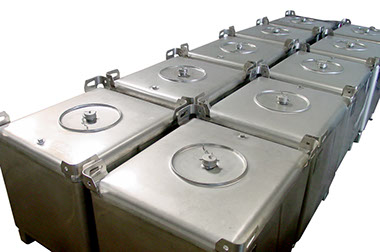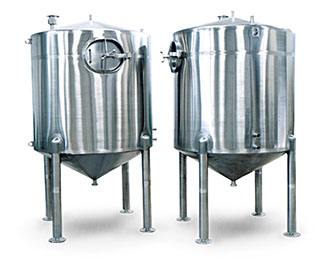 Tanques sanitarios cerrados con fondo y techo cónicos, manhole lateral, venteo y conexiones de llenado y descarga, fabricados totalmente en acero inoxidable.