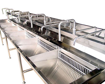 Lavadero industrial con grifos giratorios y rejilla desmontable.