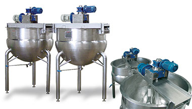 Marmitas semiesféricas con agitador dual y rascadores de teflón.